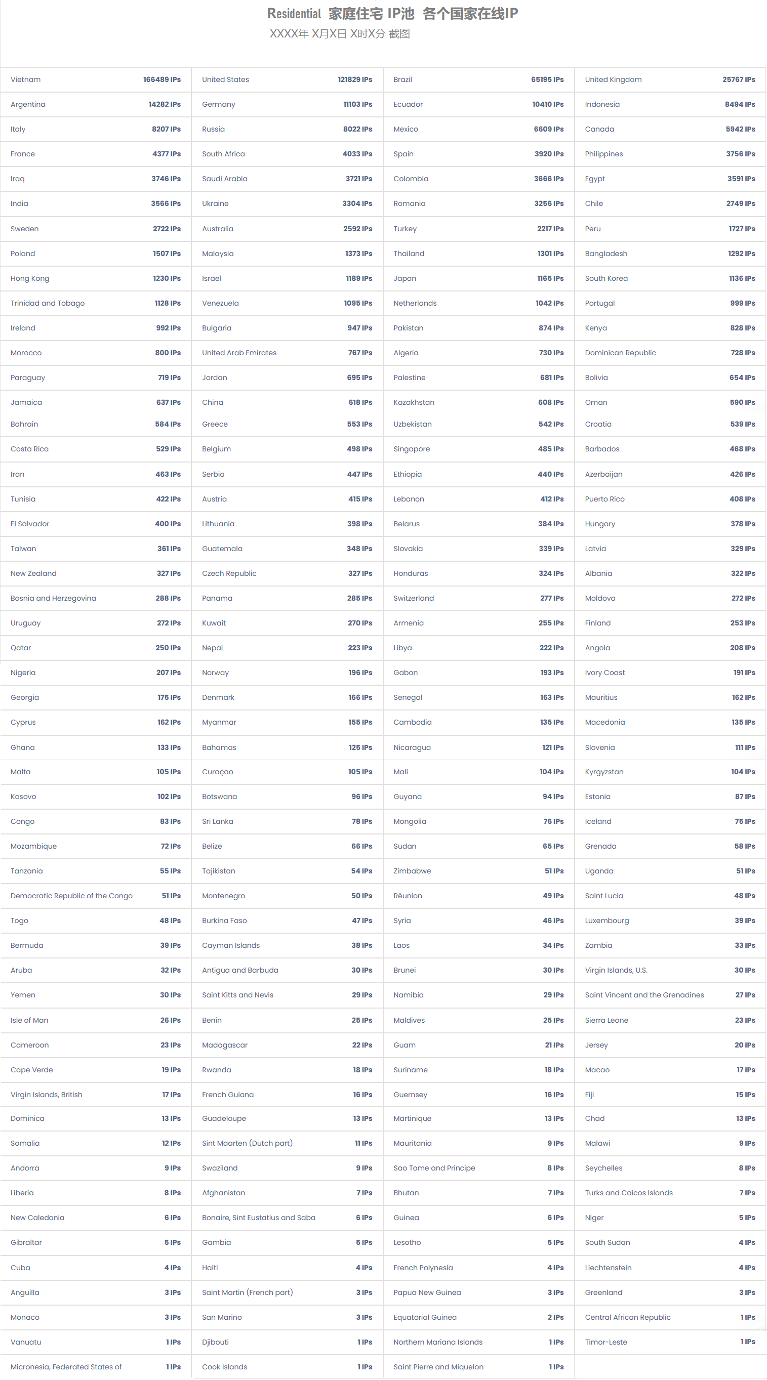 能时时查看IP池真实每个国家IP数量,是正确使用代理IP关键