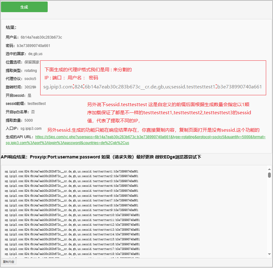 &quantity= 2500 4500 数量你需要生成的IP数量,1-10000个,最好根据你选择的国家,目前该国在线的IP数量和你的项目需求搭配其他参数来决定你生成的数量,不选择默认生成3个